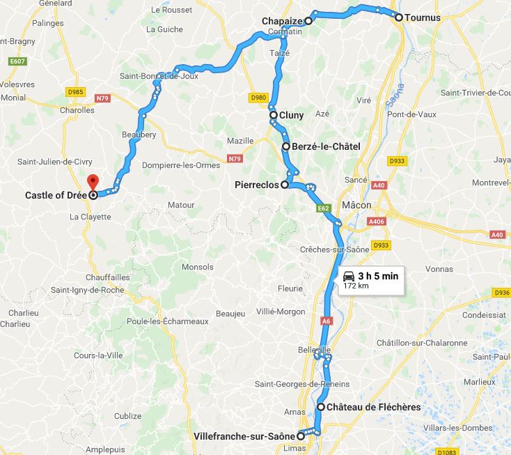 A differenza dell’itinerario seguito nel viaggio precedente, durante il quale abbiamo raggiunto Djon per poi spostarci verso sud, stavolta abbiamo sfiorato Lione e siamo risaliti verso nord, attraverso le regioni del Beaujolais e del Mâconnais, fino a Tournus.